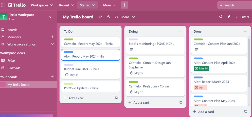 Trello Dashboard to monitor progress and well-coordination